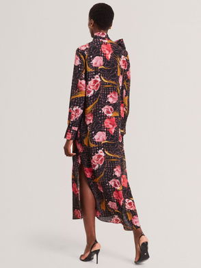 Elann Floral Print Pussybow Tie Neck Midi Dress