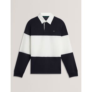 Jovien Long Sleeve Check Polo Shirt, Navy