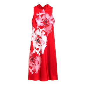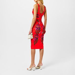 Kandea Floral Puff Sleeve Open Back Midi Dress