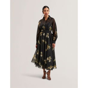 Women's Liorral Printed Organza Belted Maxi Shirt Dress