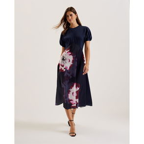 Suannaa Dropped Waist Knit Bodice Woven Skirt Dress