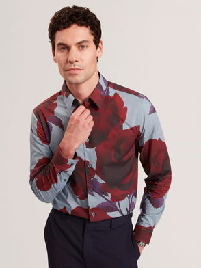 Phelin Floral Print Cotton Blend Shirt, Navy