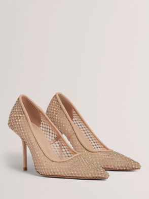 Criista Mesh Court High Stiletto Diamante Heels, Pink