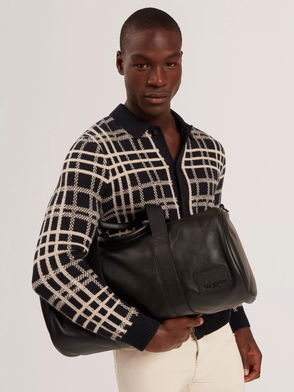 Jovien Long Sleeve Check Polo Shirt, Navy