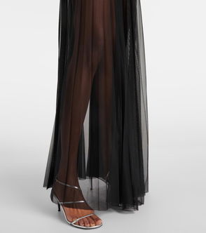 Vallen Pleated Mesh Maxi Skirt