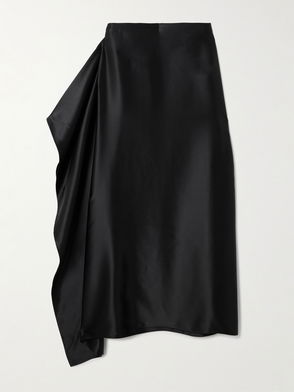 Athalia Draped Duchesse Silk-Satin Midi Skirt