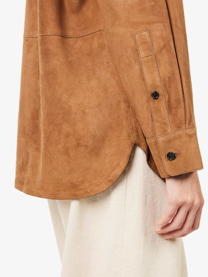 Relaxed-Fit Long-Sleeves Suede Shirt