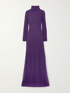 Metallic Silk-blend Turtleneck Maxi Dress