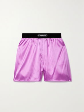 Velvet-trimmed Silk-blend Satin Shorts