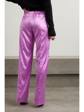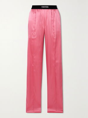 Jacquard-trimmed Stretch-silk Satin Wide-leg Pants