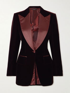 Silk Satin-trimmed Cotton-velvet Blazer