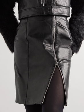 Zip-detailed Textured-leather Skirt
