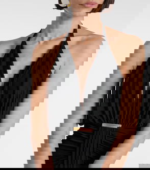 Metallic Ribbed-Knit Halterneck Maxi Dress
