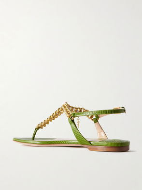 Zenith Chain-embellished Lizard-effect Leather Slingback Sandals