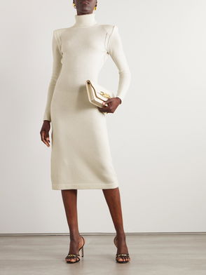Sequin-Embellished Metallic Ribbed-Knit Midi Dress