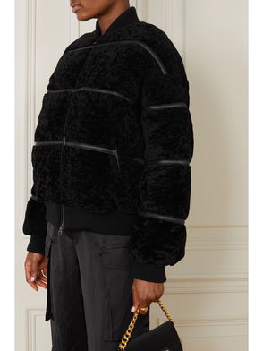 Leather-trimmed Quilted Shearling Down Bomber Jacket