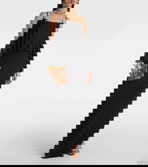 Embellished Leather-Trimmed Velvet Shoulder Bag