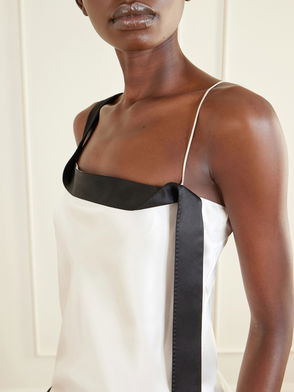 Asymmetric Draped Two-tone Silk-satin Camisole