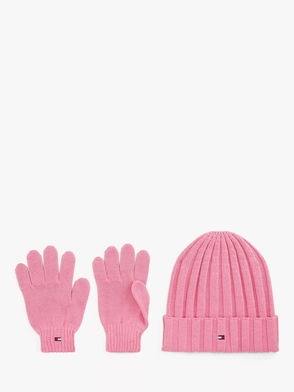 Kids' Cotton Beanie Hat And Gloves Set, Mystic Pink