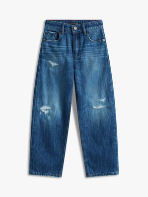 Kids' Baggy Destructed Jeans, Dark Blue