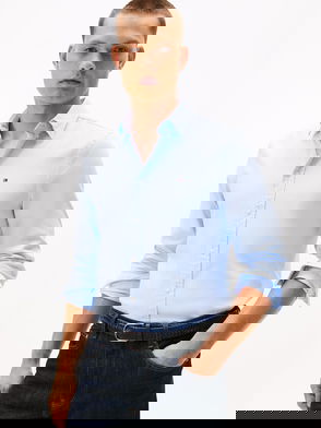Slim Fit Yarn Dyed Dobby Shirt Blue