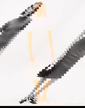 Festive Metallic Slim Midi Bodycon Dress In Dark Grey