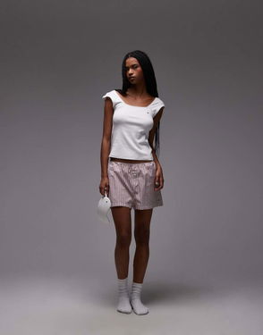 Pointelle Pyjama Top And Shorts Gift Set With Eye Mask In White And Red