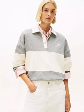 Colour Block Rugby Sweatshirt, Med Heather Grey