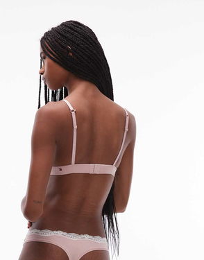 Lace Trim Unlined Triangle Bra In Baby Pink