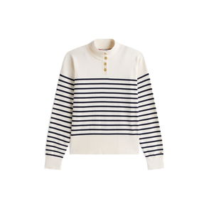 Stripe Gold-Tone Button Mock Neck Jumper