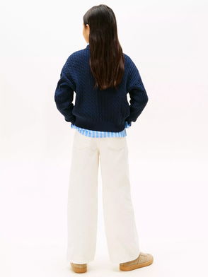 Kids' Cropped Cable Knit Jumper, Dark Night Navy