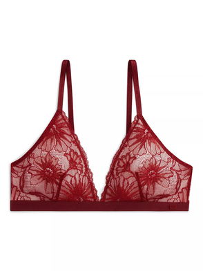 Metallic Thread Floral Lace Triangle Bra, Rouge