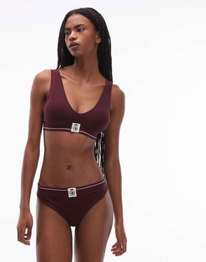 Crest Stripe Waistband Scoop Back Bralette In Burgundy