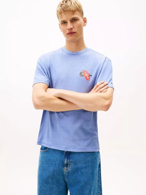 Tommy Jeans Back Slogan Textured Relaxed T-Shirt, Light Blue