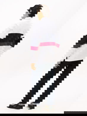 Tommy Jeans Logo Label Striped Relaxed Rugby Shirt, White/Multi