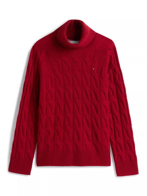 Cable Knit Roll Neck Pure Wool Jumper, Regatta Red