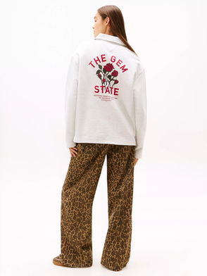 Badged Teddy Oversized Zip-Thru Sweatshirt