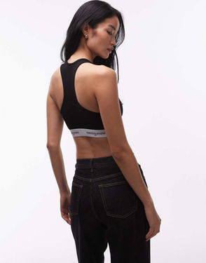 Tommy Girl Knitted Crop Long Sleeve Top With Logo Band In Black