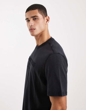 Flag Logo T-shirt With Mountain Peak Back Print In Washed Black