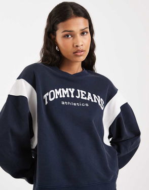 Varsity Logo Boxy Fit Crewneck Sweatshirt In Navy