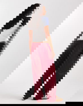 Mia Mid Rise Relaxed Straight Leg Jeans In Pink Denim