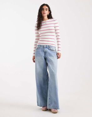 Badge Rib Long Sleeve Stripe T-shirt In Bright Pink