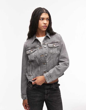 Pleated Trucker Denim Jacket With Embroidered Detail