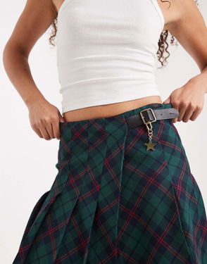 Tommy Girl Tartan Midi Skirt With Buckle Detail In Green