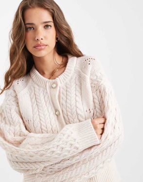 Tommy Girl Preppy Cable Knit Cardigan In Cream