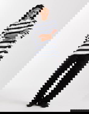 Long Sleeve Regular Fit Crop Poplin Shirt In Blue Stripe