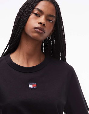 Tommy Girl Knitted Crop Long Sleeve Top With Logo Band In Black