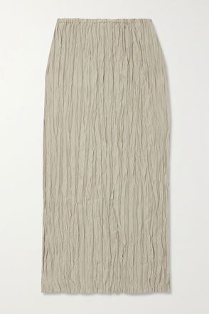 Crinkled Silk-Twill Midi Skirt
