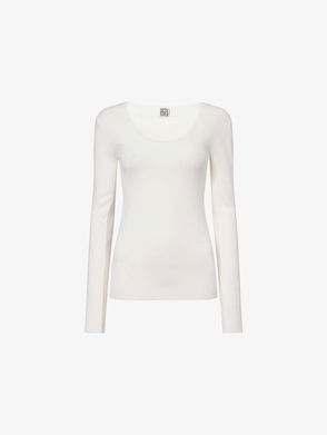 Ribbed Scoop-Neck Stretch-Wool Blend Top