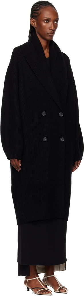 Black Long Shawl-Lapel Cardigan